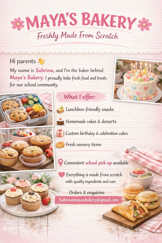 The P&C are very happy to announce our Camboon canteen will be occupied again in 2026! We welcome Sabrina and her team from Maya’s Bakery and their delicious, healthy food for our kids.